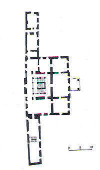 | - | U trećem razdoblju izgradnje dvorca središnje krilo dobilo je novu fasadnu dekoraciju i altanu u pročelju te oblik portalnog otvora što djeluje vrlo raskošno i podsjeća na europske dvorce. U prizemno predvorje umetnute su balustradske ograde od nepečene gline. U predvorju je imperijalno stubište visokobaroknog stila. Ovo stubište je jedini ukras unutrašnjosti dvorca. Ovi elementi vjerojatno su nastali nakon potresa 1880. godine. | + | U trećem razdoblju izgradnje dvorca središnje krilo dobilo je novu fasadnu dekoraciju i altanu u pročelju te oblik portalnog otvora što djeluje vrlo raskošno i podsjeća na europske dvorce. U prizemno predvorje umetnute su balustradske ograde od nepečene gline. U predvorju je imperijalno stubište visokobaroknog stila. Ovo stubište je jedini ukras unutrašnjosti dvorca. Ovi elementi vjerojatno su nastali nakon potresa 1880. godine.[[Datoteka:Tlocrt_jakovlje.jpg|200px|mini|right|Tlocrt prvog kata]] |