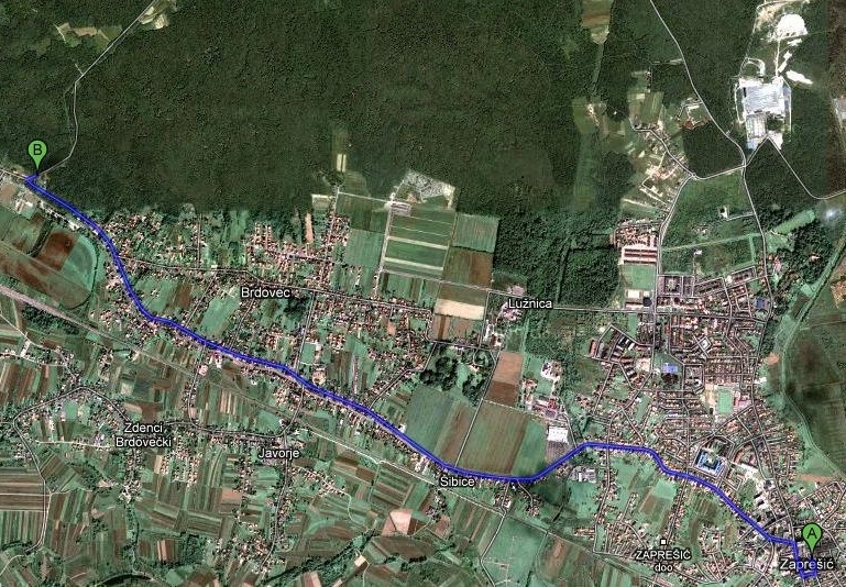 Google putokaz od Zaprešića do Januševca.