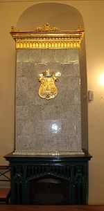 Kalijeva peć sa zlatnim grbom baruna Raucha u glavnom salonu.
