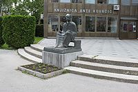 Spomenik ispred Knjižnice Ante Kovačića u Zaprešiću (rad hrvatskog kipara i slikara Jure Žaje)