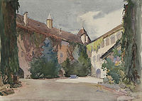 Mihovil Krušlin: Dvorište u starom gradu Mokrice, oko 1933., akvarel, 36x50, 4 cm, MG-486 (Moderna galerija, Zagreb / fotograf: Goran Vranić)