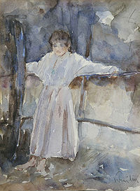 Mihovil Krušlin: Djevojčica uz ogradu, 1914., akvarel, 32x16,4 cm, MG-2232 (Moderna galerija, Zagreb / fotograf: Goran Vranić)