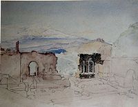 Mihovil Krušlin: Kartaga, 1927., olovka i akvarel, 25x31 cm (vlasnik Dragutin Grgas, Zaprešić)